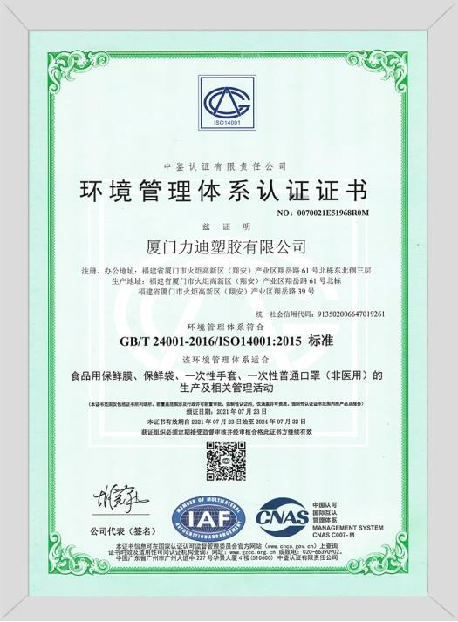 廈門力迪塑膠有限公司,成立于2005年是一家產業鏈完整、已有專業研發設計團隊、生產、銷售及品牌運營為一體的現代化企業。公司主營:一次性餐飲耗品與一次性醫療耗品;具體產品有:一次性PE手套、保鮮袋、保鮮膜、環保垃圾袋、纏繞膜、PS航空杯、紙杯、錫紙以及醫用防護口罩,醫用外科口罩,醫用創可貼,醫用敷貼,醫用手套等一次性耗品。車間按照國家“QS標準化進行規劃設計,運營面積達35000+平方米,擁有專業生產線400余條,月產量3900余噸。